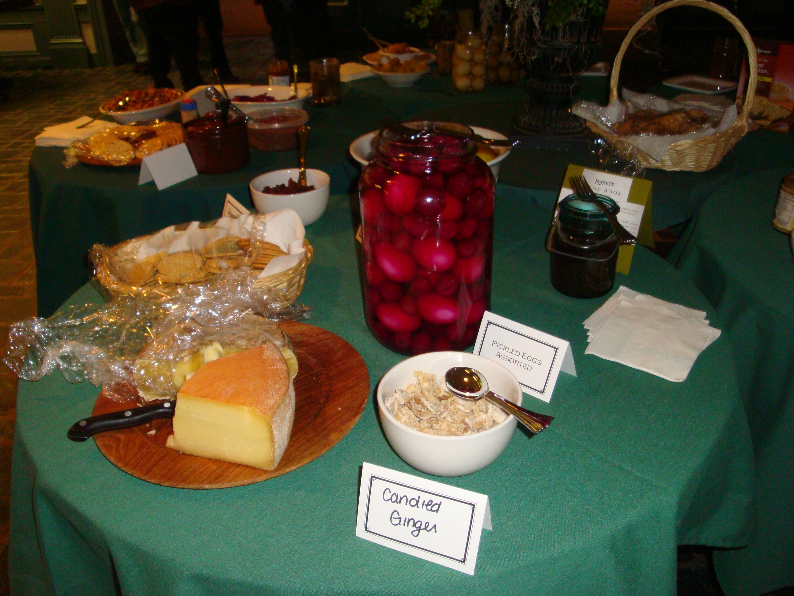 The array of goodies at Friday evening’s reception was truly impressive- and delicious. Several versions of pickled eggs, many ALHFAMer-made cheeses, interesting treats and historic edibles.