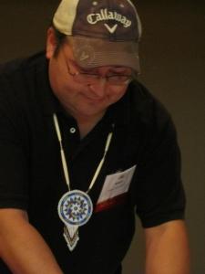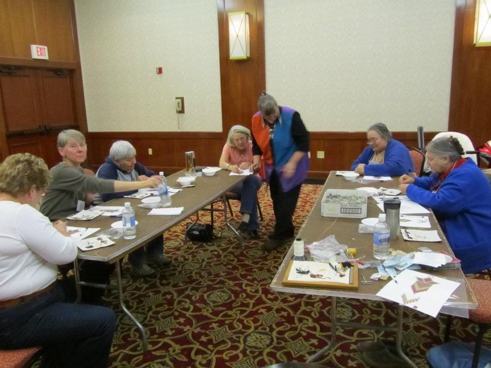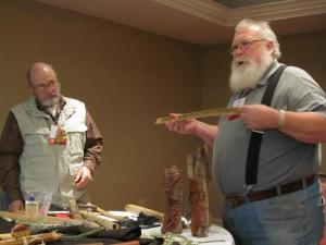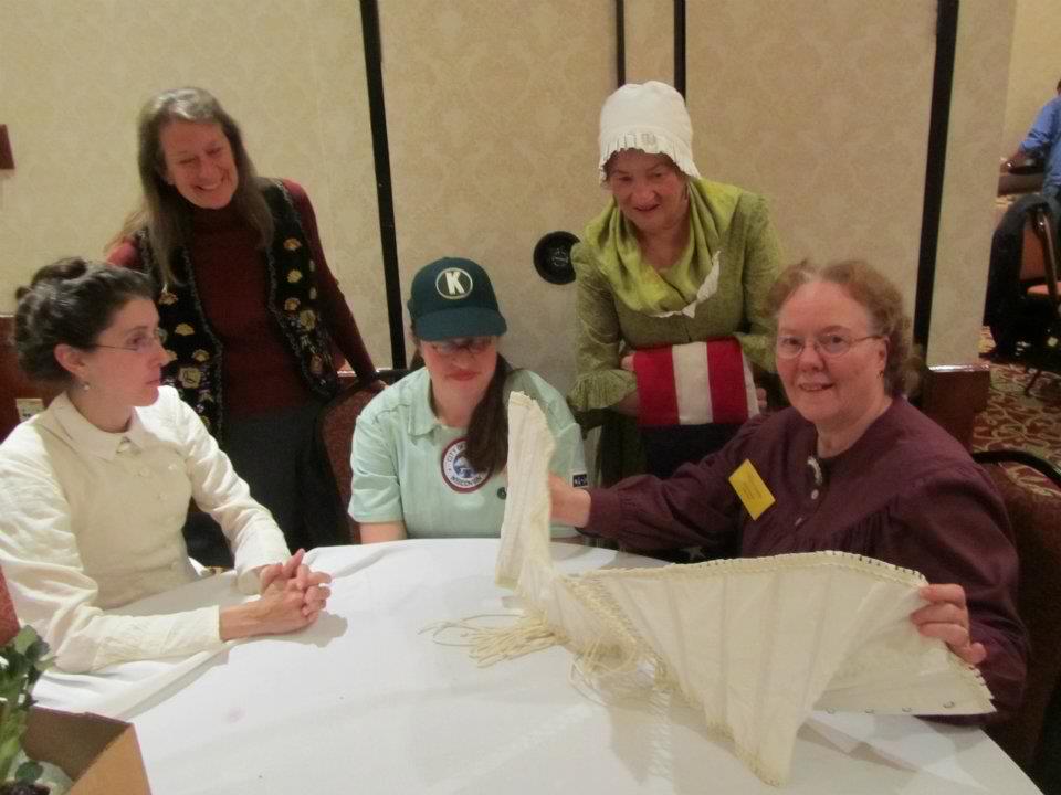 Native American Flutes with Bob Kline and Walter Webster Jr.Checking out the flutes.Creating a School Curriculum seesion participants waiting for it to begin.Theme was to come dressed as your favorite historical charachter. These ladies from Buckley Homestead in Lowell, Indiana came as a group of Sufragettes.Melinda Carricker is Anne of Green Gables.Dan Schoeneberg, Jeff Murray, and Rob Burg waiting for dinner.Dinner is served!Must be good. Look at that line.Just a few of the selections available at the annual silent auction. I really wanted the antique banjo.Our conference hosts, the staff and volunteers of Historic Point Basse, Inc.Newly elected MOMCC Vice President Betsy Urven in her new dress.Only at a living history conference will you find a discussion about corsets during the evening dinner dance.Members Crystal and Don Mason.History of the Ho-Chunk People with Ho-Chunk Tribal historic preservation officer William Quackenbush.The removal of the Ho-Chunk people during the time of Andrew Jackson and their later return to their Wisconsin homelands.Networking between sessions.Artifacts from the Chipped Lithic Production Technology session.South Wood County Historical Society president Phil Brown giving a session on Wisconsin's cranberry industry.Along the Cranberry Highway: harvested cranberry fields.