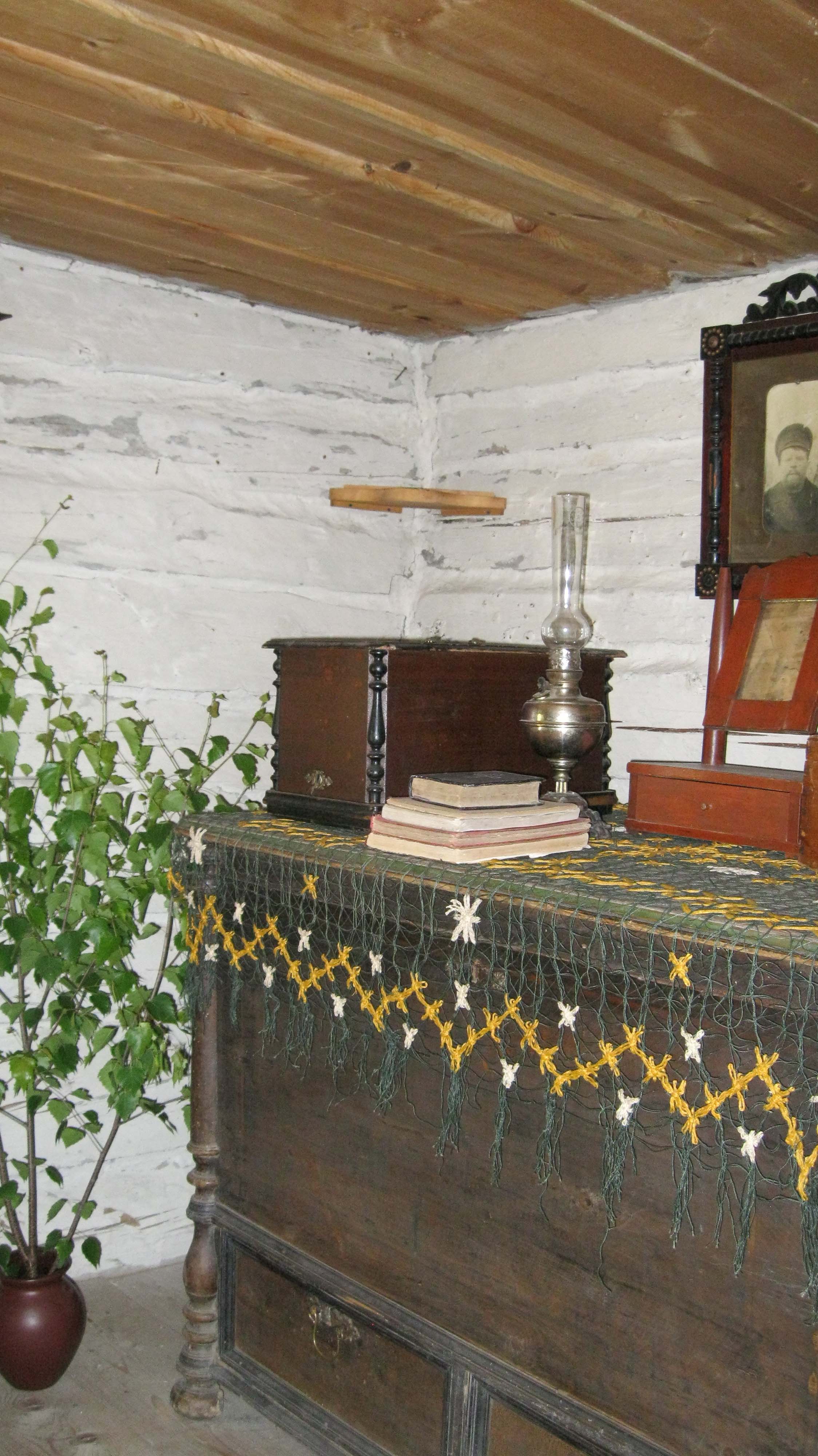 The long thin poles that fenced the Pulga garden kept the deer at bay, but perhaps not the rabbits. It was wood, as were most fences throughout the museum, but each farmstead seemed to present a different fence type; they varied in height, fabrication, and density. The gardens did not stay outside, either, because several interiors had large pots of greens cut from trees and flowering shrubs, as depicted in a tiny room of the Sepa farmhouse.
