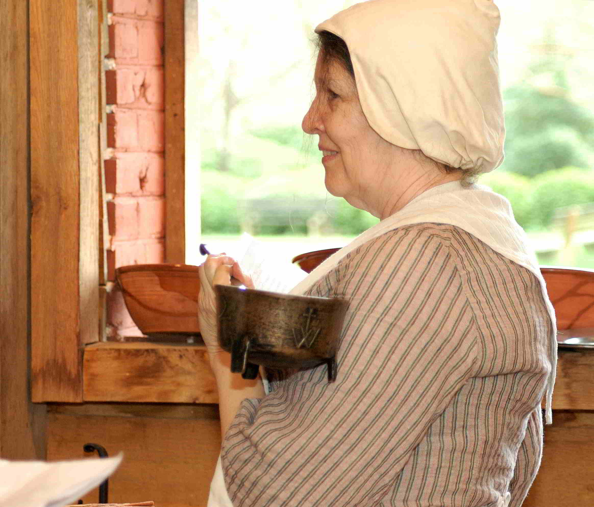 And the St. John’s site exhibition! The food was excellent, thanks to the college catering program, and provided delicious and inventive non-meat options. We had a chance to brainstorm ideas for the “currently under revision” student Science tour (and drop things from a balcony to learn about mass and gravity); tour the ship Dove with the boatswain’s (bosun’s) mate; see archaeologists at work in the lab and visit with some of the most highly-regarded archeologists in the country; check out staff fleshing a deer hide and preparing it for brain-tanning; and take a thoroughly adults-only themed tour – with several highly entertaining, participatory elements – of the Godiah Spray Plantation. And that was just Friday.